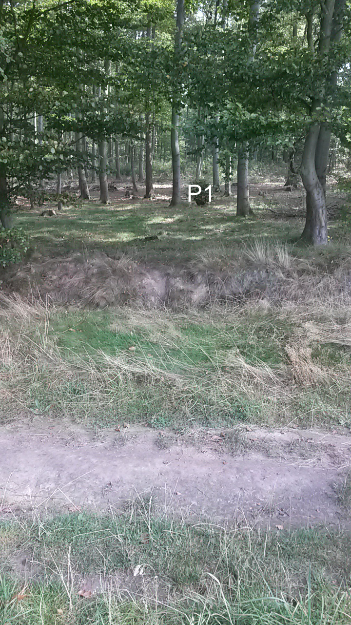 Los ging es mit Punkt 1, als Vollblind über den Weg und über den Graben ein Stück in den Wald hinein. Windrichtung von rechts nach links